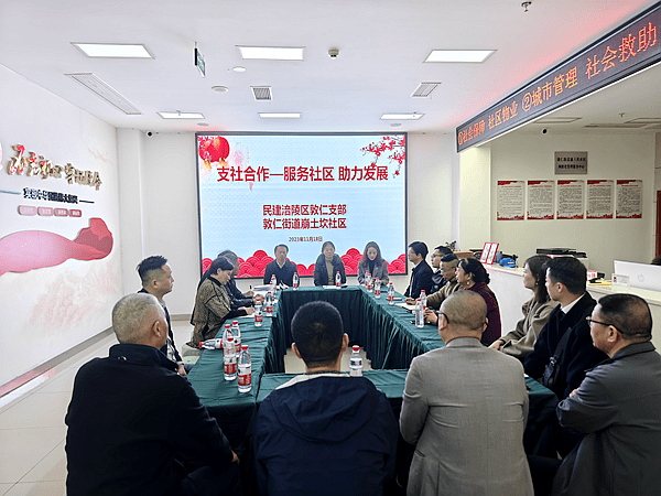 11月18日,民建涪陵区敦仁支部到敦仁街道崩土坎社区开展“支社合作—服务社区,助力发展”活动。涪陵区政协副主席、民建涪陵区委会主委陈圣玲,专职副主委黄鲁、四级调研员刘家学,支部会员及社区干部参加了此次活动。