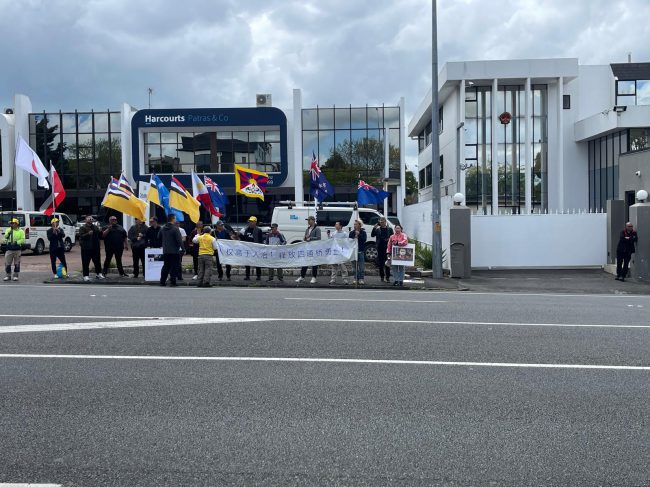 北京之春2024年10月13日消息:此前中国民主党常务副主席兼执行长界立建组织发起全球声援“四通桥勇士”;近日,得到了美国、加拿大、日本、英国、荷兰甚至远到冰岛等国家地区当地留学生、民主人士的积极响应。纽西兰也不例外,今日,纽西兰民主平台、满洲复国运动等组织和个人;近二十余人齐聚中共驻奥克兰领事馆前抗议中共人权恶行,督促释放被捕者彭立发。